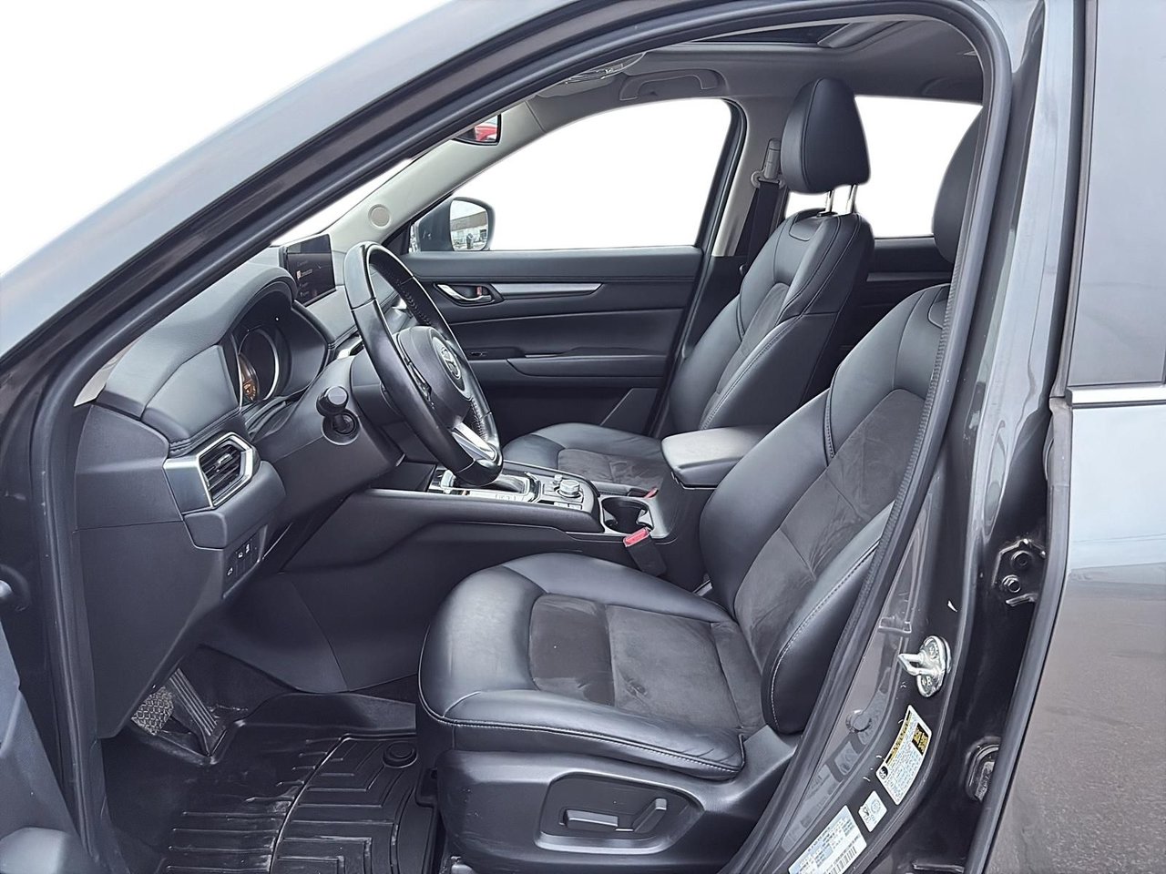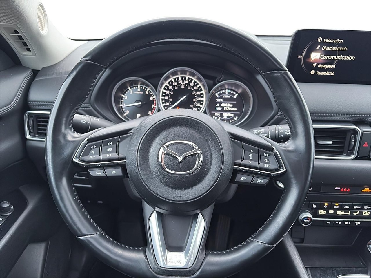 Mazda CX-5 GS 2021 with Comfort Package The 2021 Mazda CX-5 GS offers an excellent balance of comfort, performance, and advanced safety technologies. Equipped with the 2.5L engine and i-ACTIV all-wheel drive, it is perfectly suited for our driving conditions. Standard Equipment (GS trim): Heated front seats Heated steering wheel Central display with Apple CarPlay and Android Auto Rearview camera Blind Spot Monitoring system Adaptive Cruise Control Automatic headlights and rain-sensing wipers Additional Features with the Comfort Package: Advanced keyless entry Power sunroof Dual-zone automatic climate control 19-inch alloy wheels