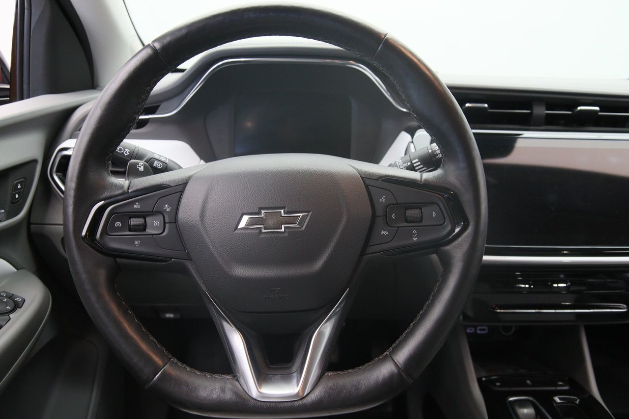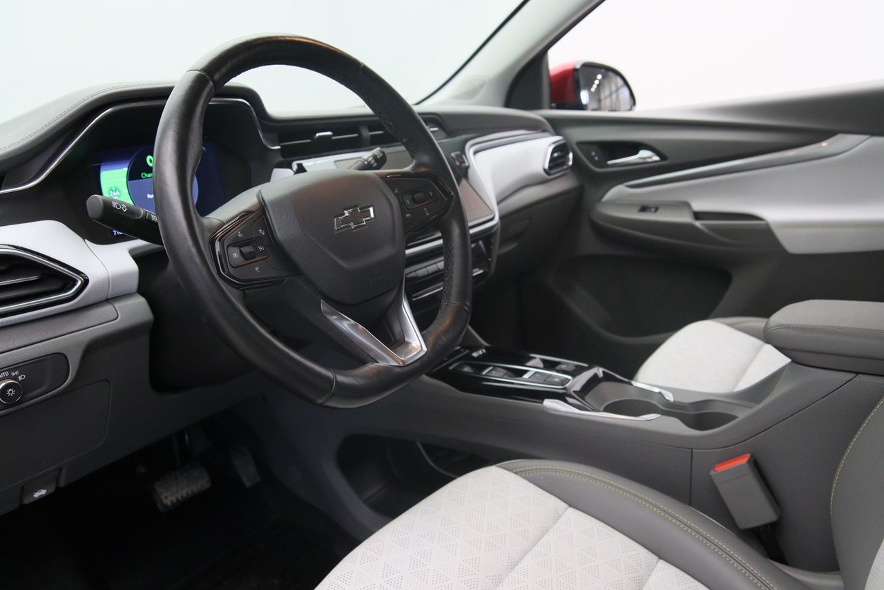 Le 2023 Chevrolet Bolt EUV Premier incarne un luxe électrique au cœur pratique d’un VUS urbain : sa batterie de 65 kWh offre jusqu’à 397 km d’autonomie, tandis que son moteur délivre 201 ch et 266 lb-pi de couple pour une réponse vive. L’intérieur est raffiné : sellerie en cuir perforé, sièges avant chauffants et ventilés, sièges arrière chauffants, volant en cuir chauffant. Il intègre des technologies avancées : écran tactile 10,2″ avec Apple CarPlay/Android Auto sans fil, charge sans fil, vision à 360° et rétroviseur numérique. La version Premier peut aussi être équipée de Super Cruise pour une conduite mains libres sur certaines routes.