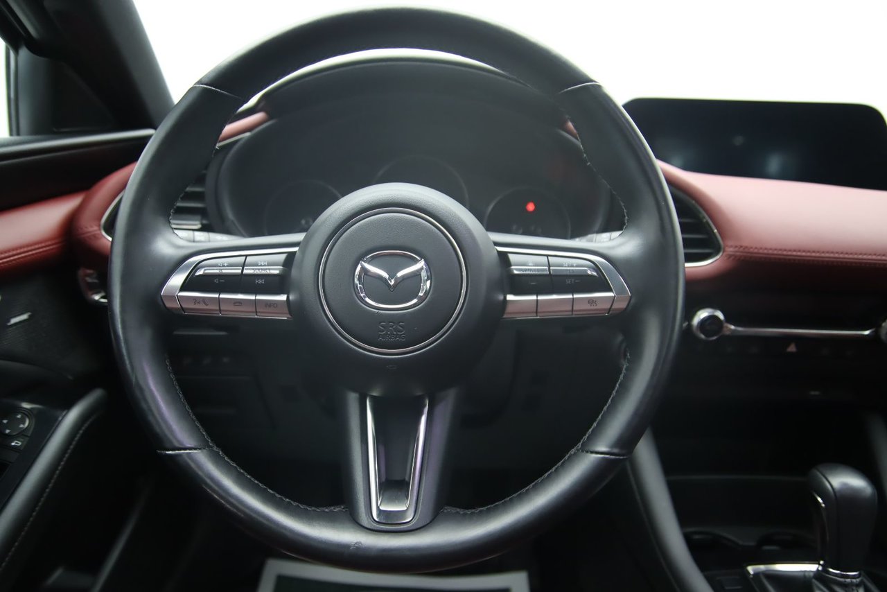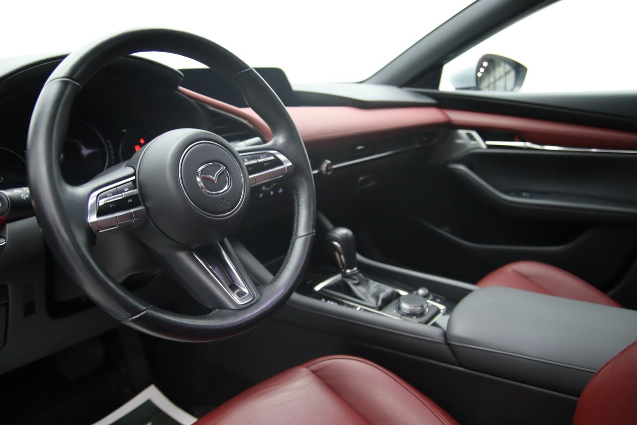 La Mazda 3 GT 2020 est une berline compacte haut de gamme qui allie élégance, performance et technologie. Elle est équipée d’un moteur 2,5 litres de 186 chevaux, offrant une conduite à la fois dynamique et raffinée. Son design extérieur épuré reflète la philosophie Kodo de Mazda, mettant en valeur des lignes fluides et sportives. L’intérieur est soigné, avec des matériaux de qualité et un système d’infodivertissement moderne. La version GT inclut aussi des équipements haut de gamme comme un affichage tête haute et un système audio Bose. Grâce à sa traction intégrale en option, elle offre une excellente tenue de route. C’est un choix populaire pour ceux qui cherchent confort, style et plaisir de conduire.